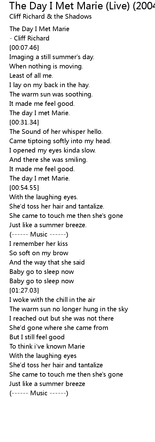 The Day I Met Marie (Live) (2004 Digital Remaster) Lyrics