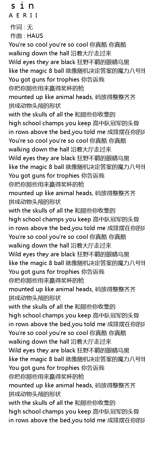 | [02:08.250] | You're so cool you're so cool 你真酷 你真酷 |