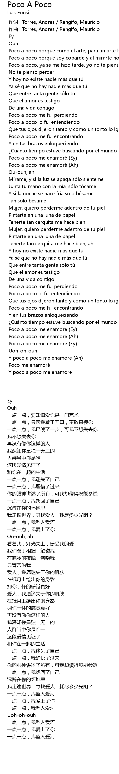 | [00:00.000] | 作词 : Torres, Andres / Rengifo, Mauricio |
