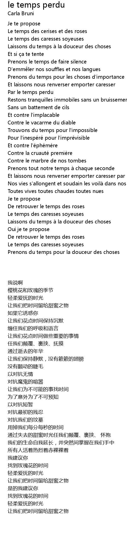 | [00:20.410] | Laissons du temps a la douceur des choses |