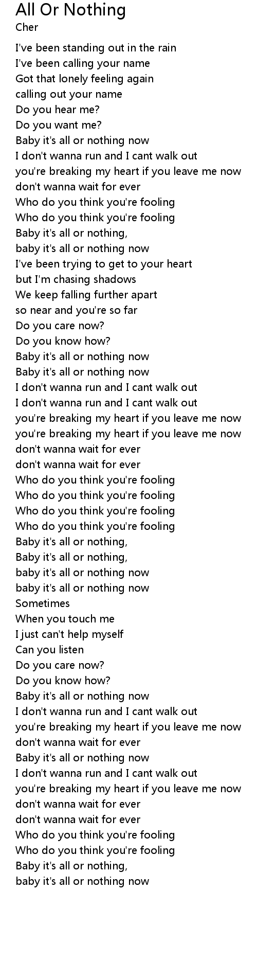 | [03:20.62] | baby it's all or nothing now |