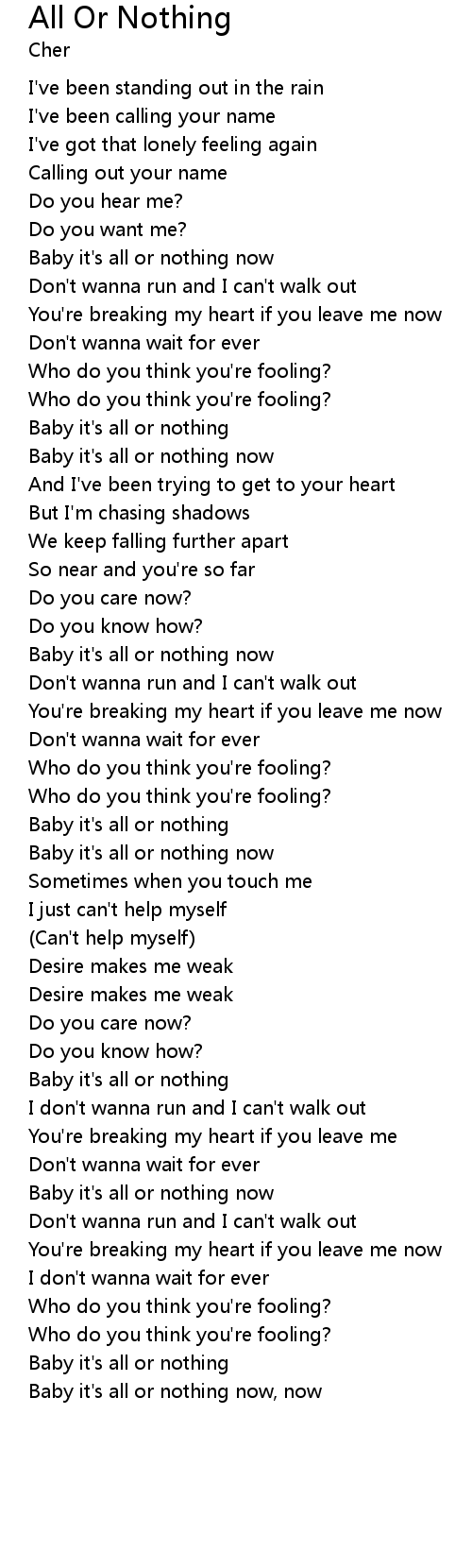Baby it's all or nothing |