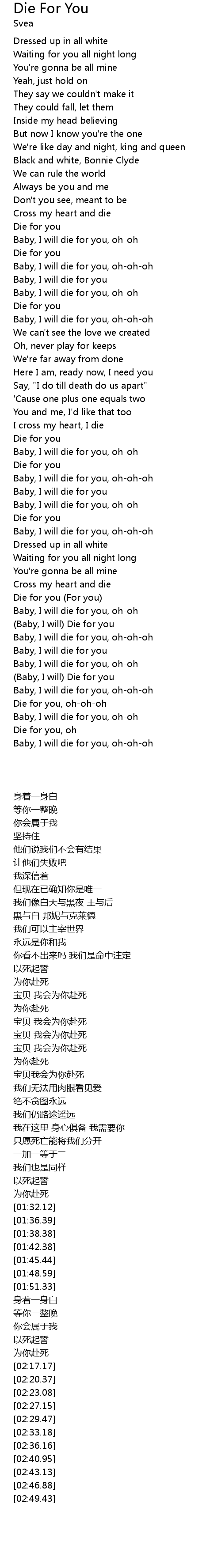 | [02:33.18] | (Baby, I will) Die for you |