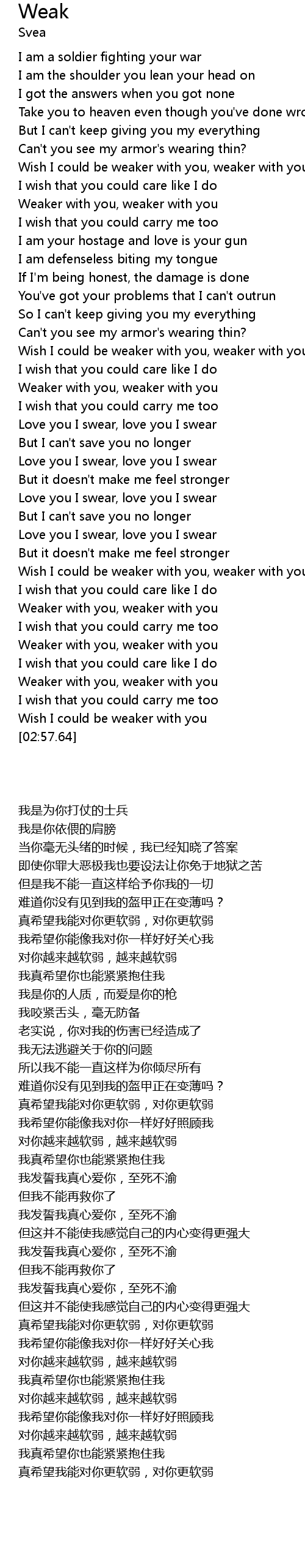 | [02:38.57] | Weaker with you, weaker with you |