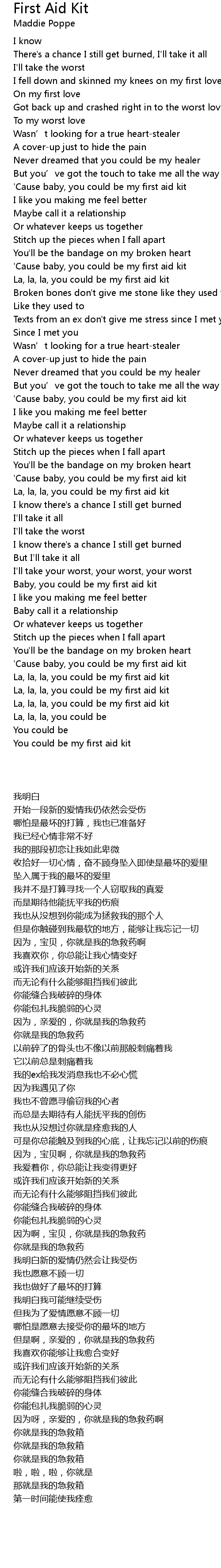 | [03:20.62] | ' Cause baby, you could be my first aid kit |