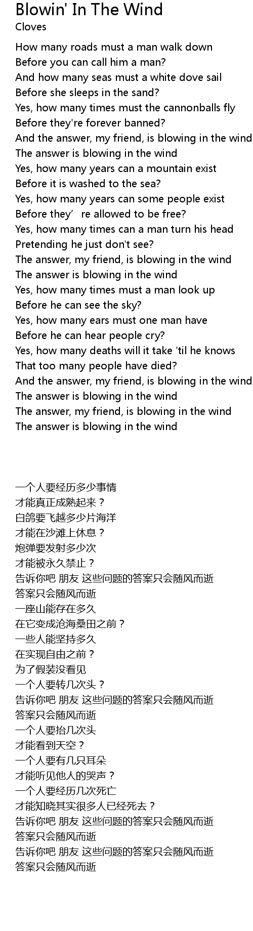 | [00:38.12] | And the answer, my friend, is blowing in the wind |