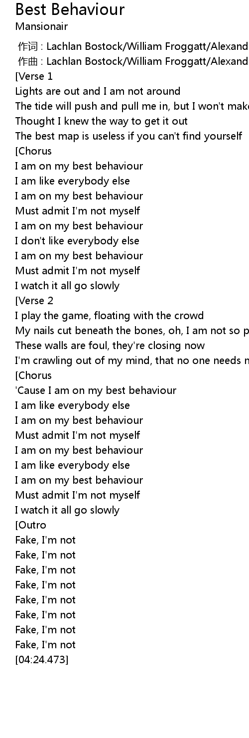| [02:35.103] | 'Cause I am on my best behaviour |