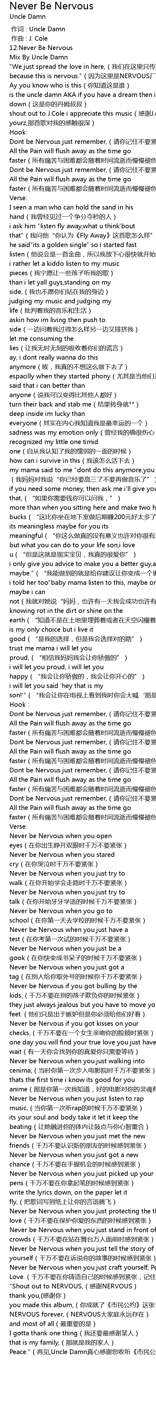 | [00:00.000] | 作词 : Uncle Damn |