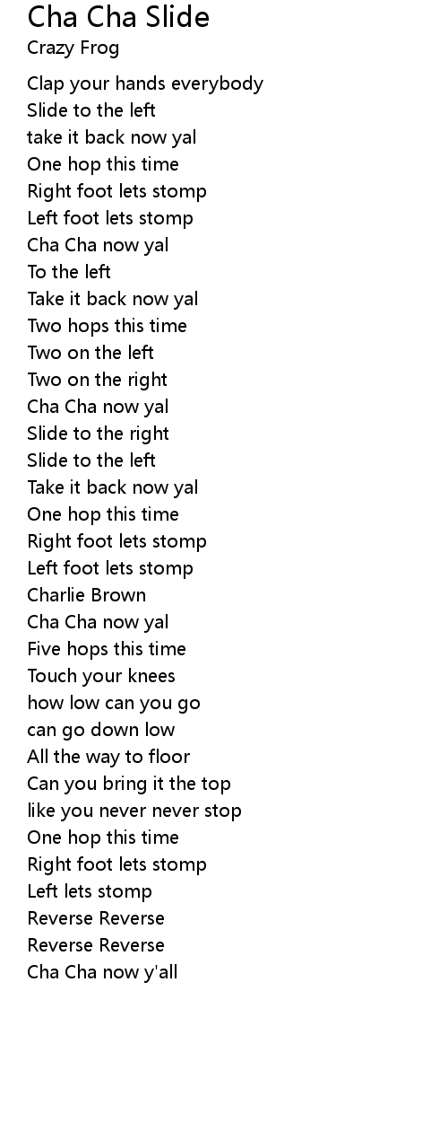 | Cha Cha now y'all |