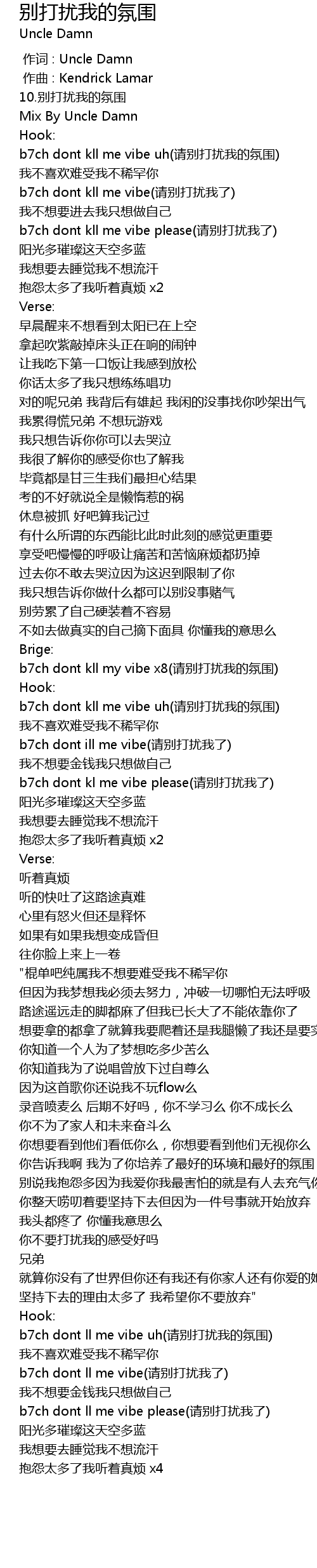 | [01:50.90] | b7ch dont ill me vibe qǐng bié dǎ rǎo wǒ le |