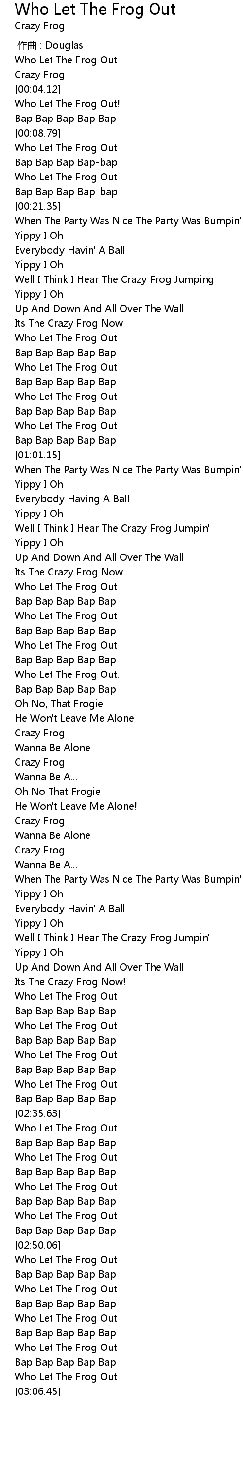 | [00:39.56] | Well I Think I Hear The Crazy Frog Jumping |
