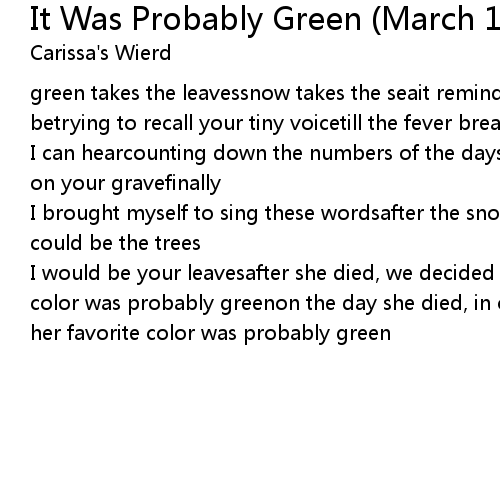 I would be your leavesafter she died, we decided to beleivethat her favorite color was probably greenon the day she died, in our hearts we did beleivethat her favorite color was probably green |