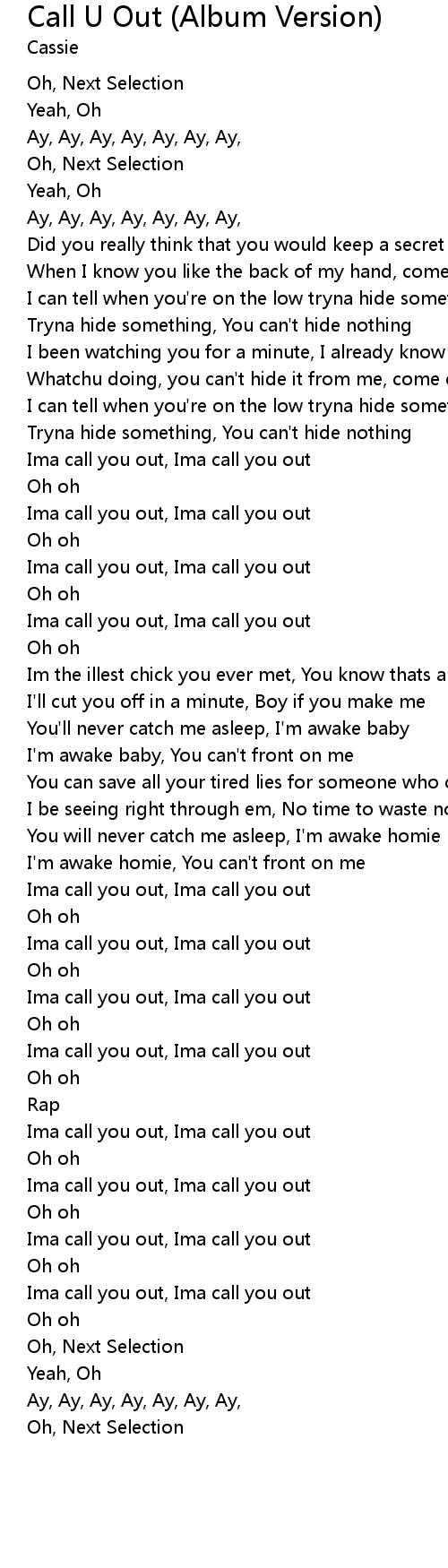 | [00:43.34] | Whatchu doing, you can't hide it from me, come on now |
