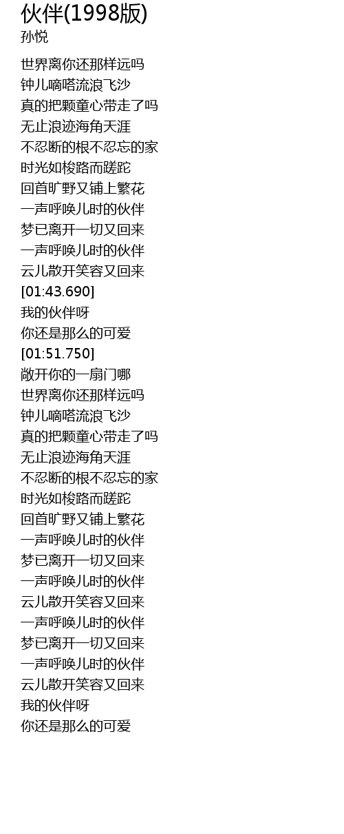 | [02:58.410] | 一声呼唤儿时的伙伴 |