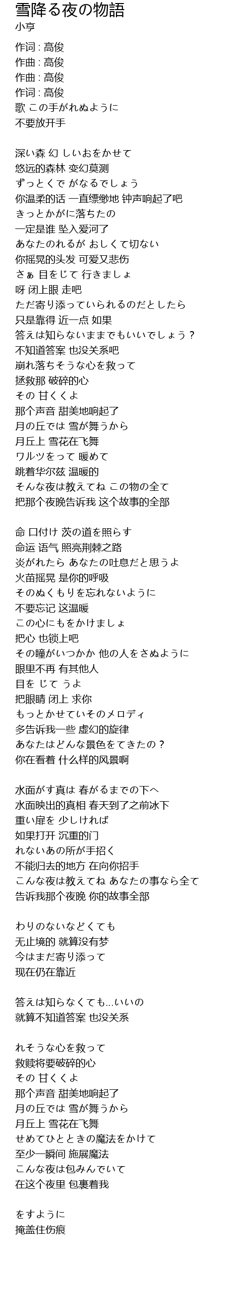 | Song | 雪降る夜の物語 |
