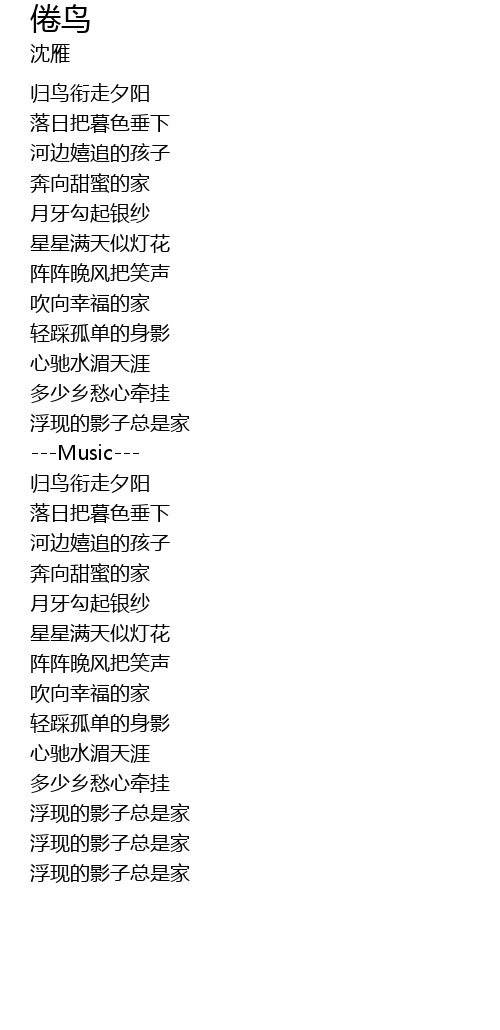 | [01:23.880] | 浮现的影子总是家 |