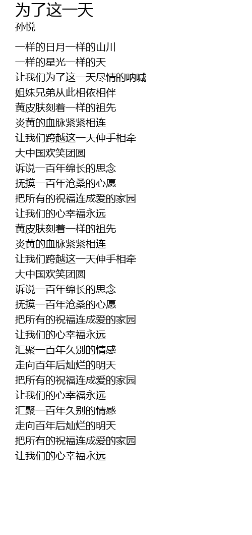 | [03:34.760] | 汇聚一百年久别的情感 |