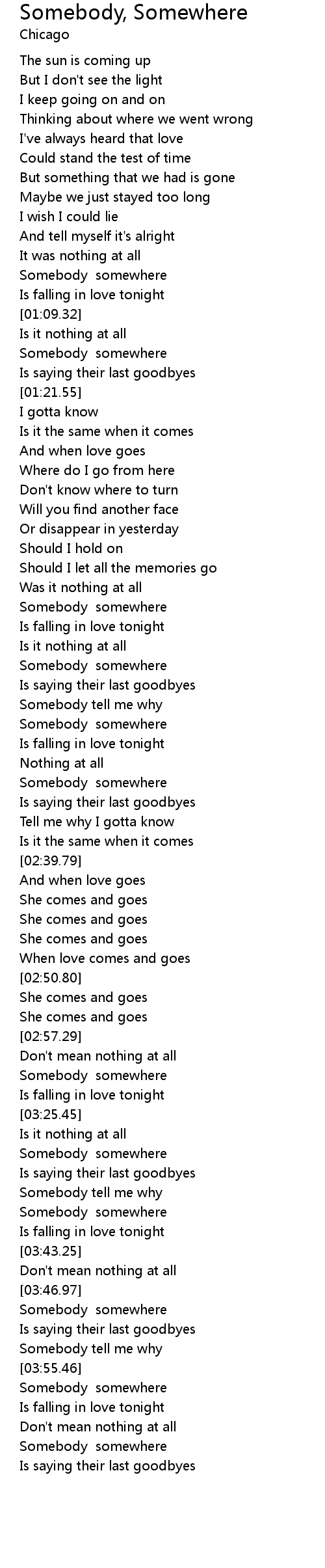 | [03:20.64] | Somebody somewhere |