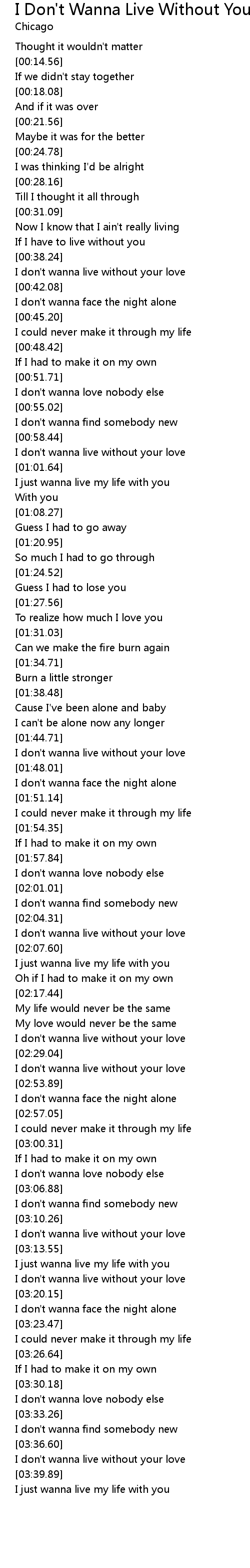 I don't wanna live without your love |