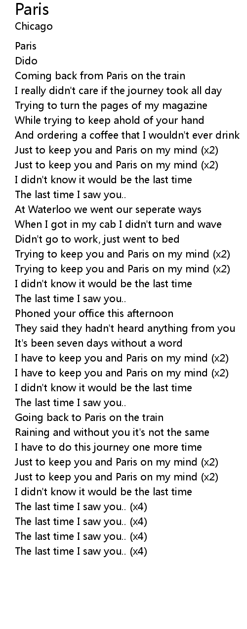 Just to keep you and Paris on my mind (x2) |