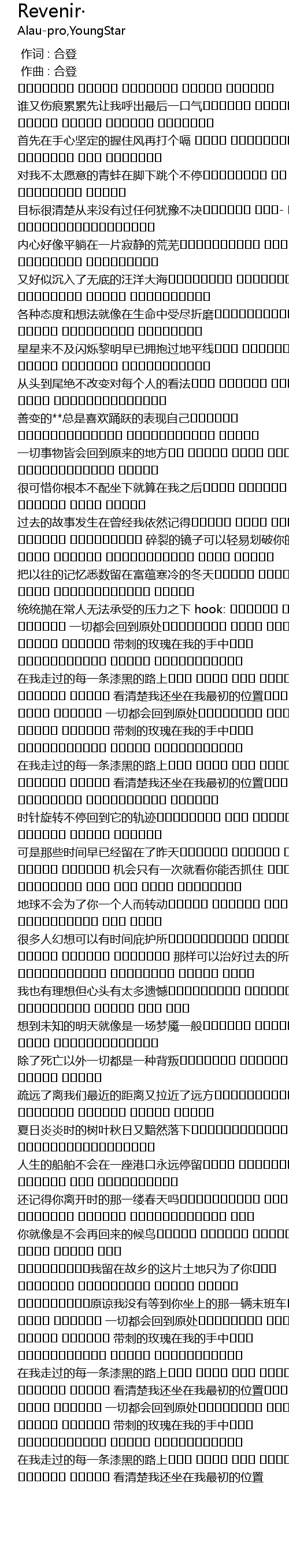 | [02:29.707] | shuí yòu shāng hén léi léi xiān ràng wǒ hū chū zuì hòu yī kǒu qì shǒu xiān zài shǒu xīn jiān dìng de wò zhù fēng zài dǎ gè gé duì wǒ bù tài yuàn yì de qīng wā zài jiǎo xià tiào gè bù tíng mù biāo hěn qīng chǔ cóng lái méi yǒu guò rèn hé yóu yù bù jué nèi xīn hǎo xiàng píng tǎng zài yī piàn jì jìng de huāng wú yòu hǎo sì chén rù liǎo wú dǐ de wāng yáng dà hǎi gè zhǒng tài dù hé xiǎng fǎ jiù xiàng zài shēng mìng zhòng shòu jìn zhé mó xīng xīng lái bù jí shǎn shuò lí míng zǎo yǐ yōng bào guò dì píng xiàn cóng tóu dào wěi jué bù gǎi biàn duì měi ge rén de kàn fǎ shàn biàn de zǒng shì xǐ huān yǒng yuè de biǎo xiàn zì jǐ yī qiè shì wù jiē huì huí dào yuán lái de dì fāng hěn kě xī nǐ gēn běn bù pèi zuò xià jiù suàn zài wǒ zhī hòu guò qù de gù shì fā shēng zài céng jīng wǒ yī rán jì de suì liè de jìng zi kě yǐ qīng yì huá pò nǐ de shǒu bǎ yǐ wǎng de jì yì xī shǔ liú zài fù yùn hán lěng de dōng tiān tǒng tǒng pāo zài cháng rén wú fǎ chéng shòu de yā lì zhī xià hook: yī qiè dōu huì huí dào yuán chǔ dài cì de méi guī zài wǒ de shǒu zhōng zài wǒ zǒu guò de měi yī tiáo qī hēi de lù shàng kàn qīng chǔ wǒ hái zuò zài wǒ zuì chū de wèi zhì yī qiè dōu huì huí dào yuán chǔ dài cì de méi guī zài wǒ de shǒu zhōng zài wǒ zǒu guò de měi yī tiáo qī hēi de lù shàng kàn qīng chǔ wǒ hái zuò zài wǒ zuì chū de wèi zhì shí zhēn xuán zhuǎn bù tíng huí dào tā de guǐ jī kě shì nèi xiē shí jiān zǎo yǐ jīng liú zài le zuó tiān jī huì zhǐ yǒu yī cì jiù kàn nǐ néng fǒu zhuā zhù dì qiú bú huì wèi le nǐ yí ge rén ér zhuàn dòng hěn duō rén huàn xiǎng kě yǐ yǒu shí jiān bì hù suǒ nà yàng kě yǐ zhì hǎo guò qù de suǒ yǒu nèi shāng wǒ yě yǒu lǐ xiǎng dàn xīn tóu yǒu tài duō yí hàn xiǎng dào wèi zhī de míng tiān jiù xiàng shì yī chǎng mèng yǎn yì bān chú le sǐ wáng yǐ wài yī qiè dōu shì yī zhǒng bèi pàn shū yuǎn le lí wǒ men zuì jìn de jù lí yòu lā jìn le yuǎn fāng xià rì yán yán shí de shù yè qiū rì yòu àn rán là xià rén shēng de chuán bó bú huì zài yī zuò gǎng kǒu yǒng yuǎn tíng liú hái jì de nǐ lí kāi shí de nà yī lǚ chūn tiān ma nǐ jiù xiàng shì bú huì zài huí lái de hòu niǎo wǒ liú zài gù xiāng de zhè piàn tǔ dì zhǐ wèi le nǐ yuán liàng wǒ méi yǒu děng dào nǐ zuò shàng de nà yī liàng mò bān chē yī qiè dōu huì huí dào yuán chǔ dài cì de méi guī zài wǒ de shǒu zhōng zài wǒ zǒu guò de měi yī tiáo qī hēi de lù shàng kàn qīng chǔ wǒ hái zuò zài wǒ zuì chū de wèi zhì yī qiè dōu huì huí dào yuán chǔ dài cì de méi guī zài wǒ de shǒu zhōng zài wǒ zǒu guò de měi yī tiáo qī hēi de lù shàng kàn qīng chǔ wǒ hái zuò zài wǒ zuì chū de wèi zhì |