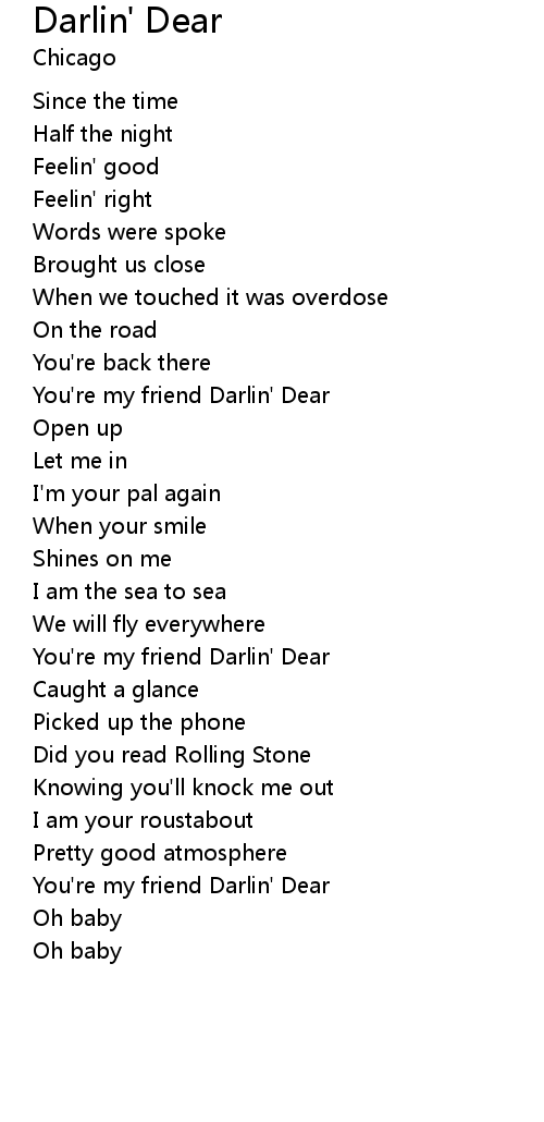 You're my friend Darlin' Dear |