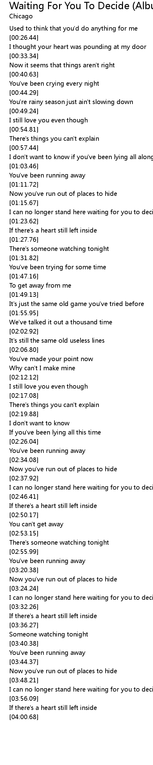 I can no longer stand here waiting for you to decide |