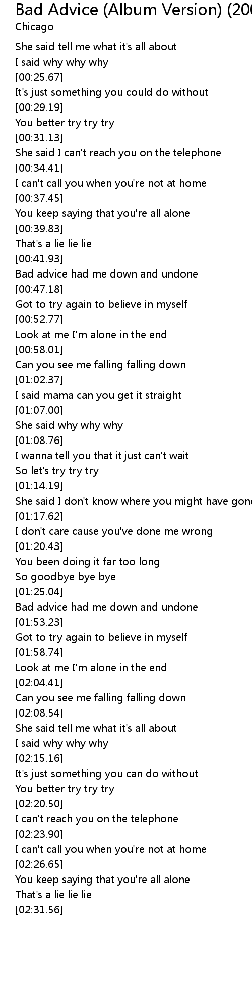 Bad Advice (Album Version) (2006 Remastered) Lyrics