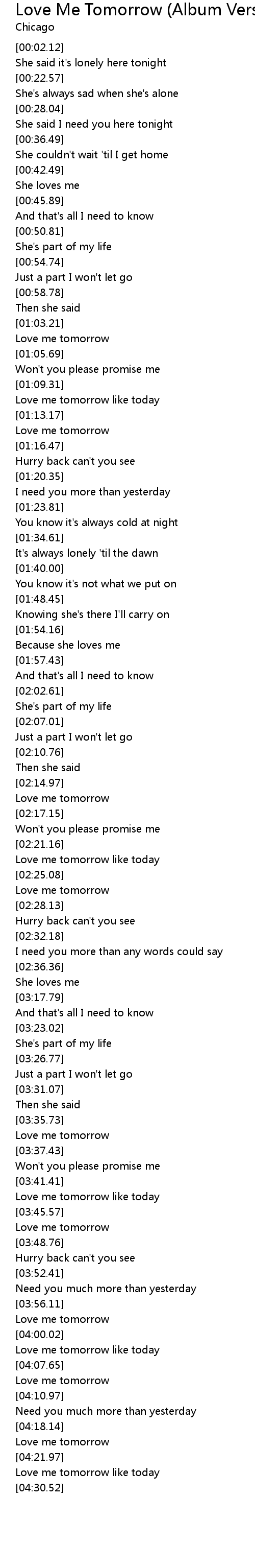[02:16.66] Love me tomorrow
