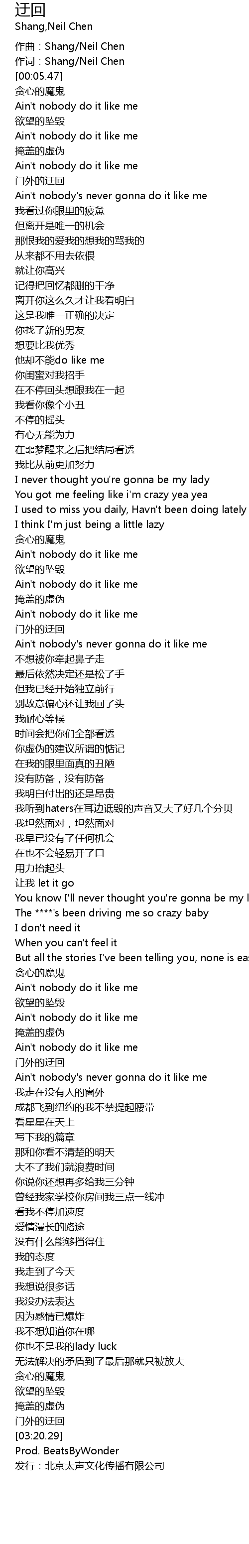 | [02:20.11] | Ain't nobody's never gonna do it like me |