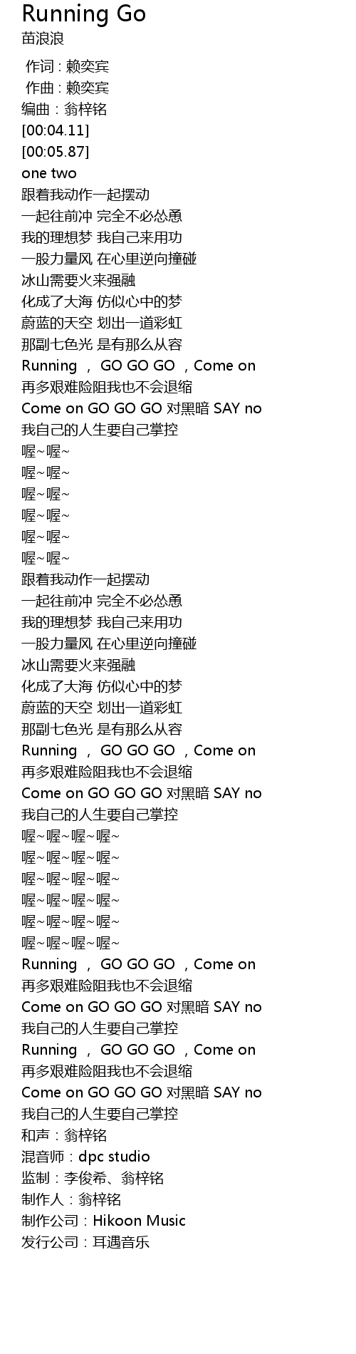| [01:42.65] | Running , GO GO GO ,Come on |