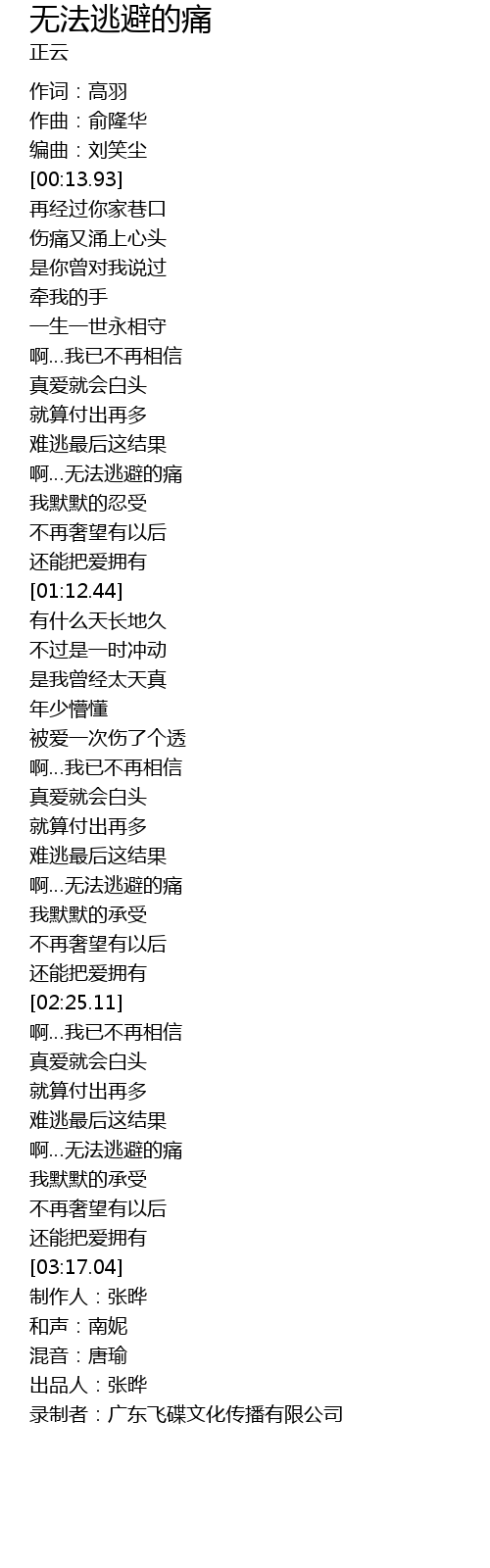 | [03:22.93] | 录制者:广东飞碟文化传播有限公司 |