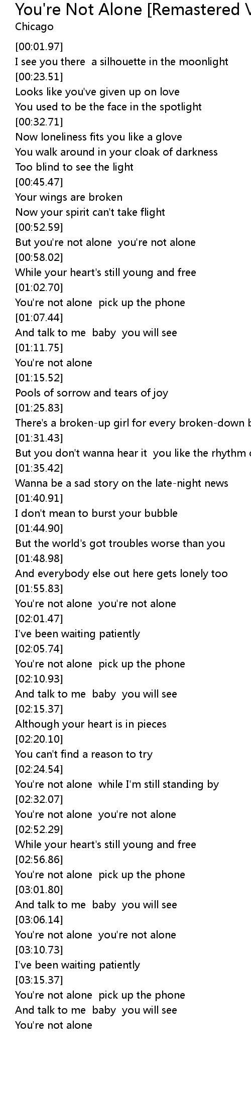 You're Not Alone [Remastered Version] (2007) Lyrics