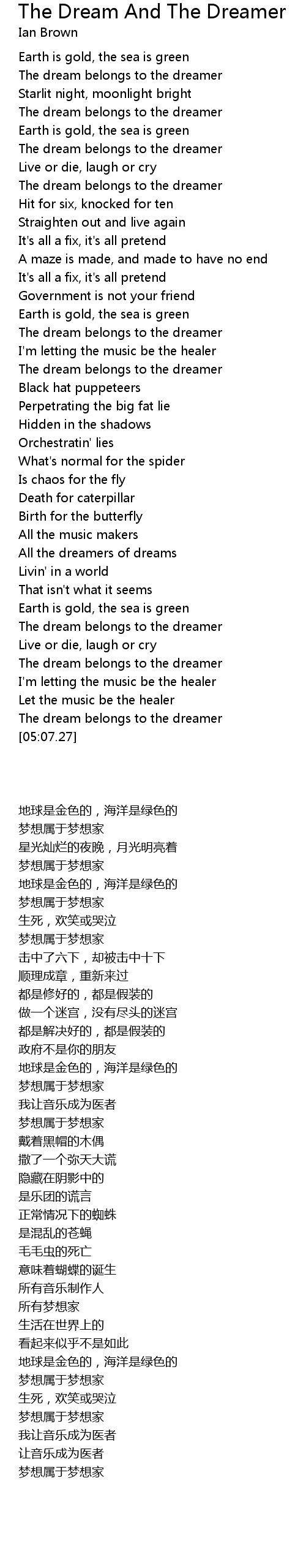 | [05:02.64] | The dream belongs to the dreamer |