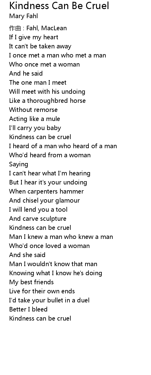 | Song | Kindness Can Be Cruel |