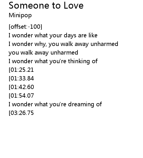 | [00:39.80][01:25.21] | I want to give you someone to love |