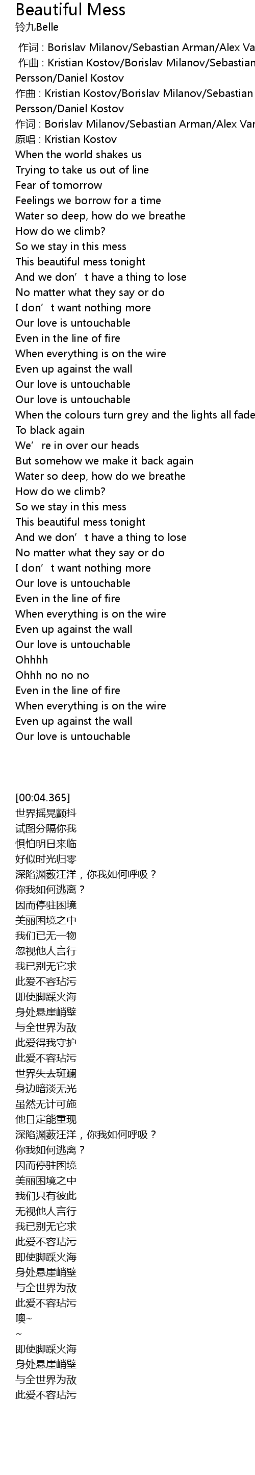 | [00:04.365] | yuan chang : Kristian Kostov |