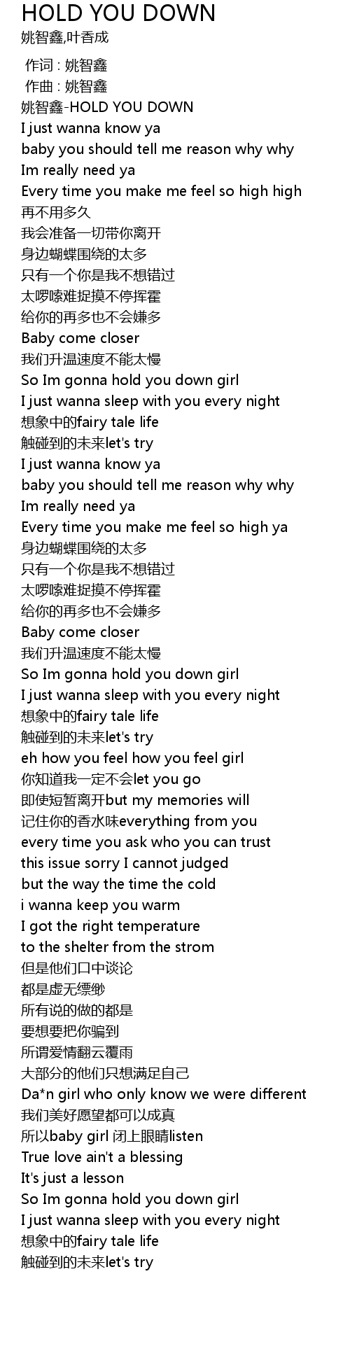 | [00:00.44] | yao zhi xin HOLD YOU DOWN |