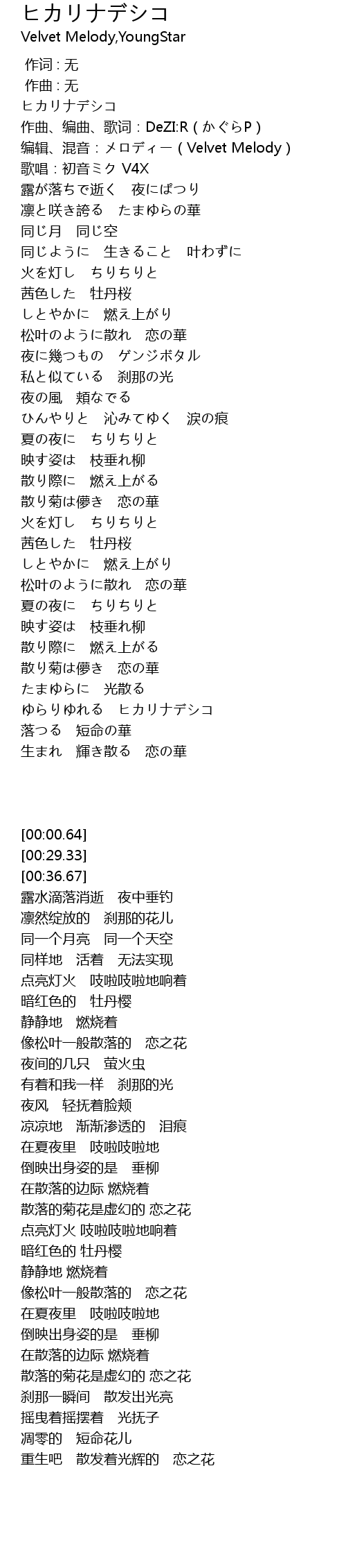 | [00:19.55] | 作曲、编曲、歌词:DeZI:R(かぐらP) |