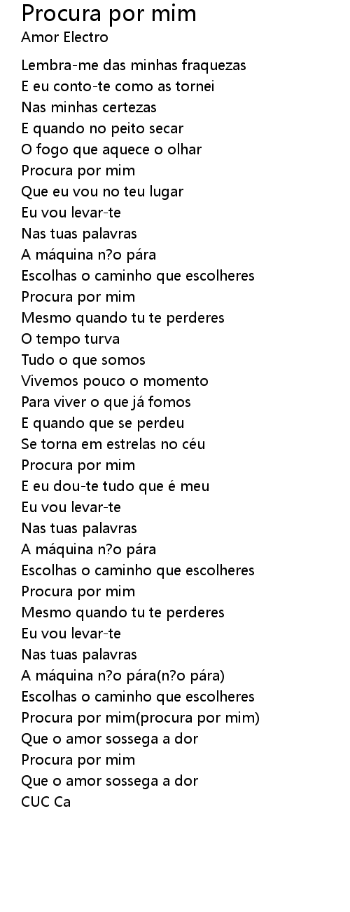 | [00:08,00] | Lembrame das minhas fraquezas |