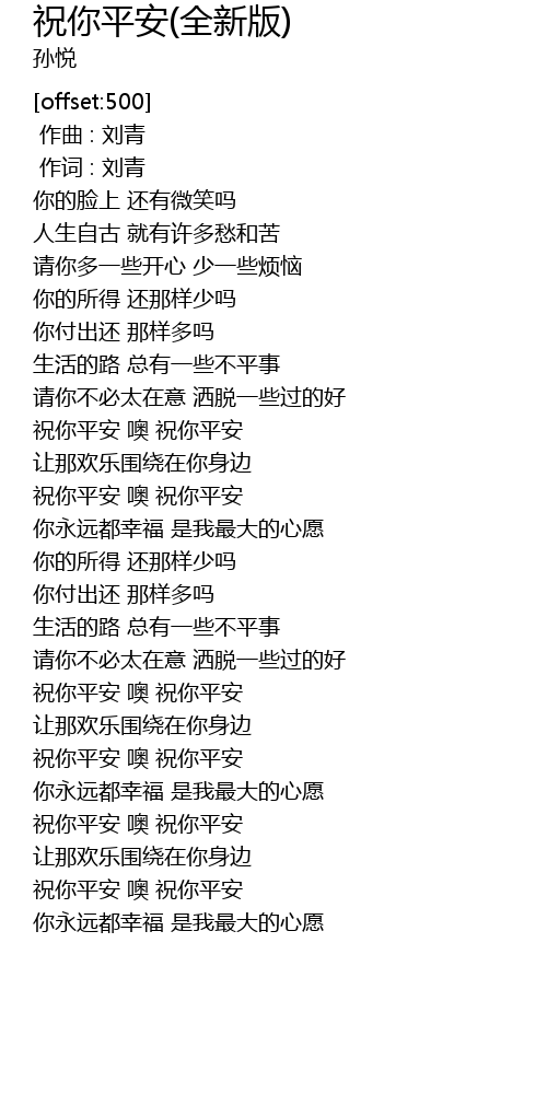 | [03:29.950] | zhu ni ping an o zhu ni ping an |
