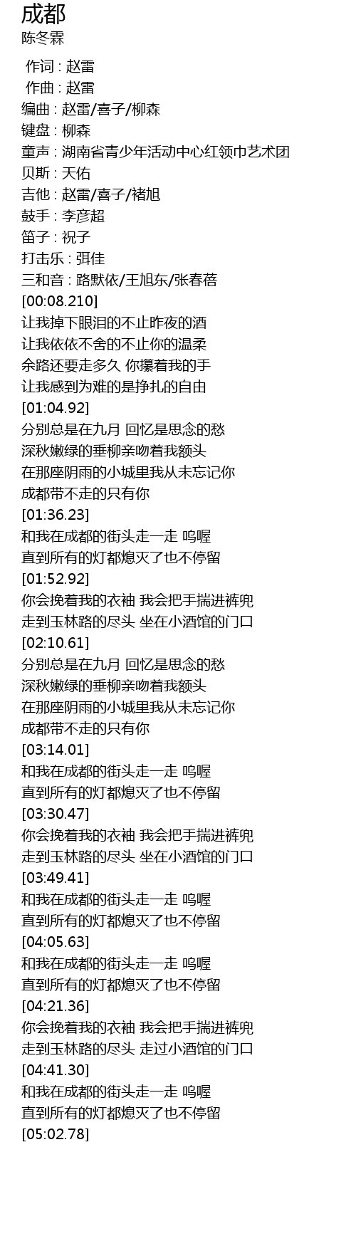 | [04:47.080] | 和我在成都的街头走一走 呜喔 |