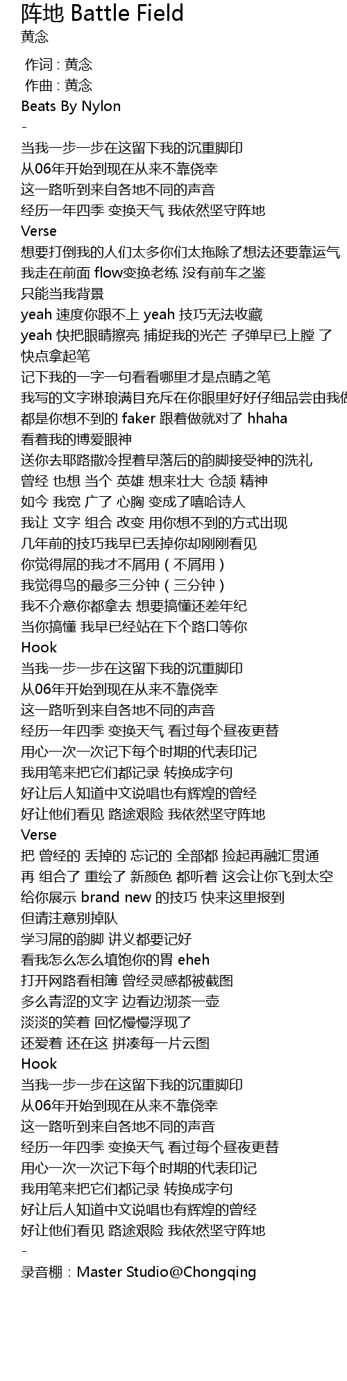 | [02:37.593] | 好让后人知道中文说唱也有辉煌的曾经 |