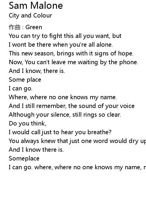 | I can go. where, where no one knows my name, no one knows my name. |