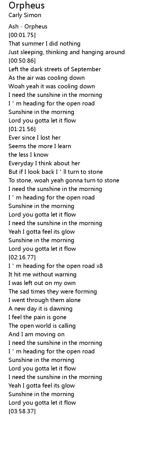 | [01:11.03] | Sunshine in the morning |
