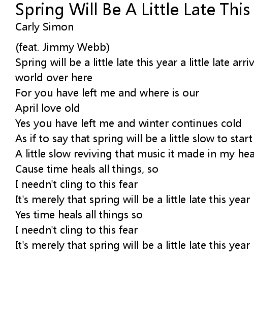 Spring Will Be A Little Late This Year - A Duet With Jimmy Webb Lyrics