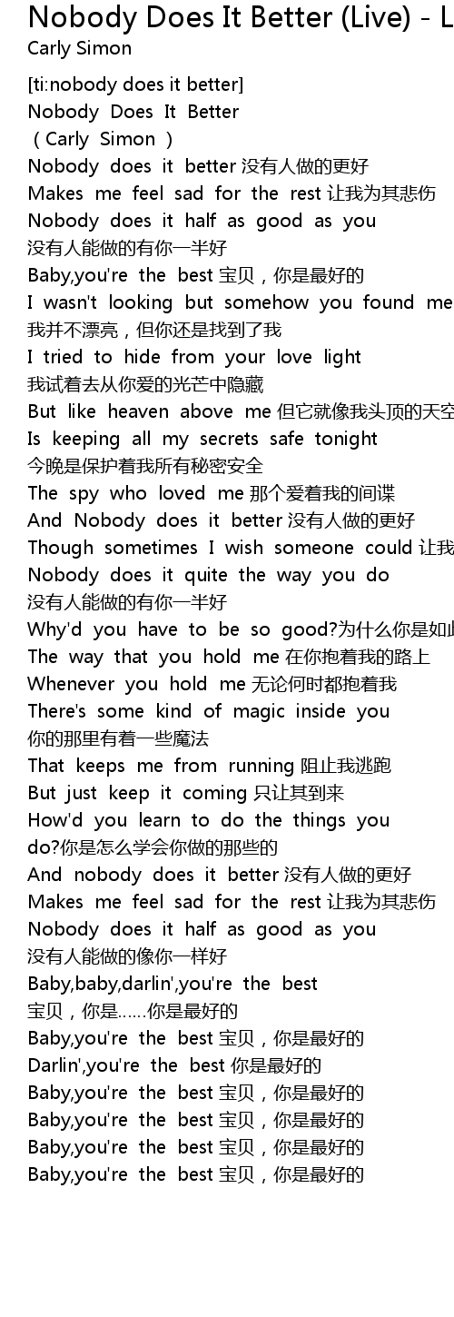 | [01:06.894] | And Nobody does it better 没有人做的更好 |