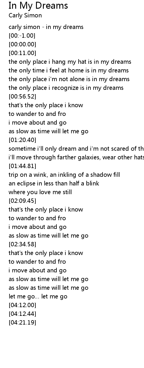 | [00:-2.00] | carly simon in my dreams |