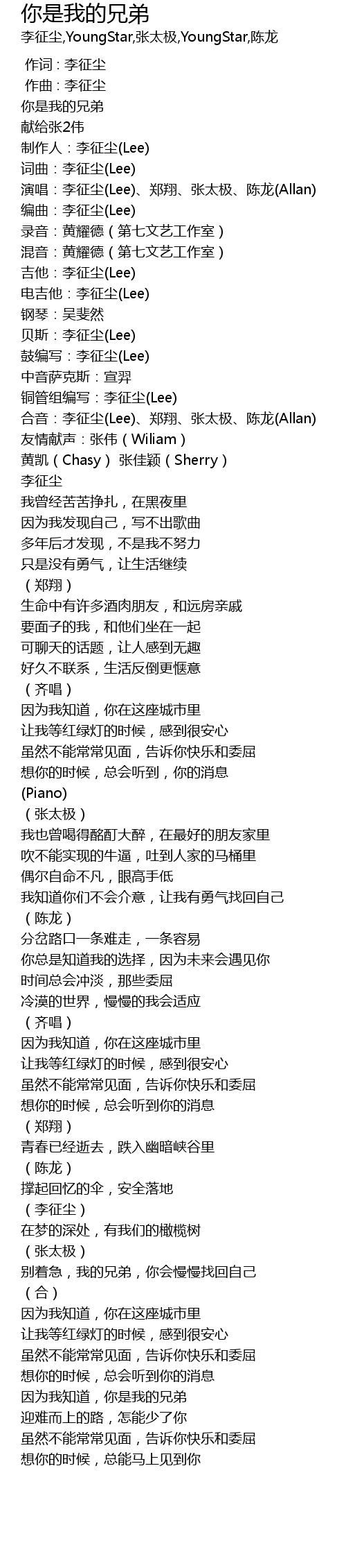 | [05:09.912] | 因为我知道,你是我的兄弟 |