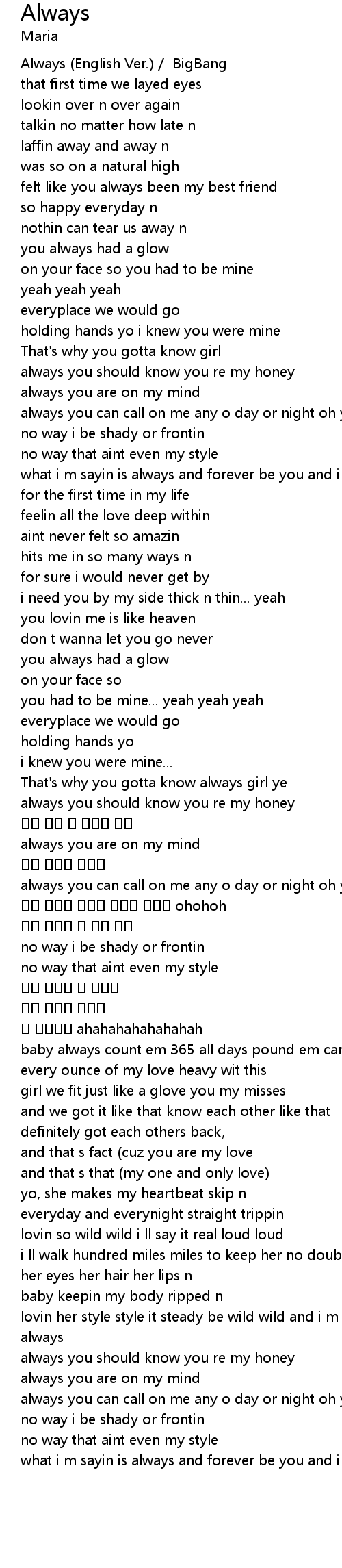 | [00:00.20] | Always (English Ver.) / BigBang |